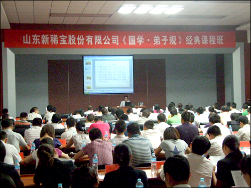 這次培訓(xùn),公司邀請了濟南市傳統(tǒng)文化研究會常務(wù)理事、山東中醫(yī)藥大學(xué)醫(yī)古文教研室任禮信老師為大家講授《弟子規(guī)》任老師的授課生動有趣、別開生面,他用通俗易懂的語言,結(jié)合現(xiàn)代典型事例,對《弟子規(guī)》全文進行了深入淺出的詳細講解,并號召大家要繼承、學(xué)習(xí)和發(fā)揚我國的傳統(tǒng)文化,營造尊老愛幼、鄰里和諧的家庭環(huán)境和愛崗敬業(yè)、團結(jié)向上的工作氛圍。會議室里不時傳來整齊的誦讀聲,大家在聽取解讀的同時,還認真記錄學(xué)習(xí)筆記,整個培訓(xùn)現(xiàn)場呈現(xiàn)出學(xué)國學(xué)、學(xué)中華傳統(tǒng)文化的濃郁氛圍。