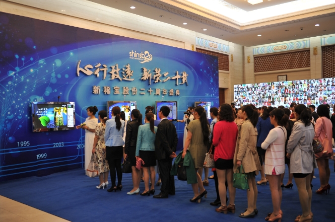 2015年5月9日,是新稀寶股份二十周歲生日,這一天,新稀寶股份全體員工共計(jì)600余人,齊聚山東濟(jì)南南郊賓館為公司慶生,公司董事長湯傳忠先生、常務(wù)副總杜征國先生、副總鄭朝霞女士等全體高層盛裝出席。