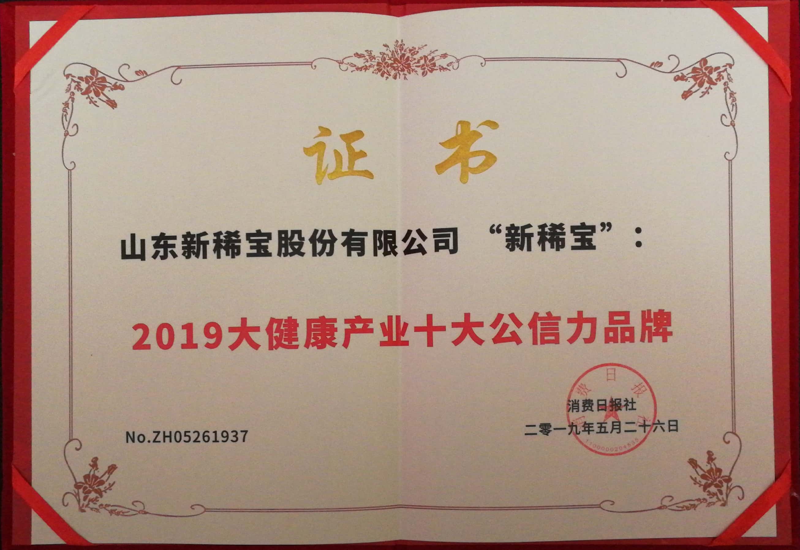 “新稀寶”被消費(fèi)日?qǐng)?bào)社評(píng)為“2019大健康產(chǎn)業(yè)十大公信力品牌”