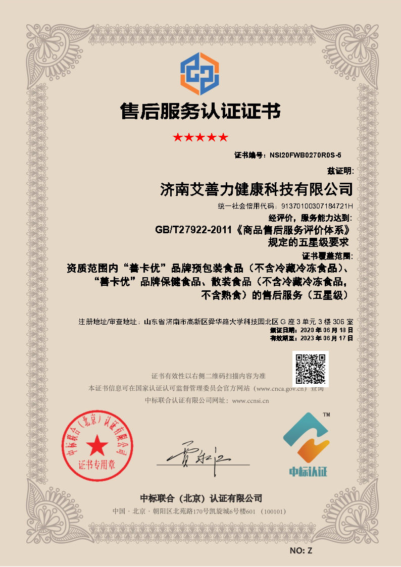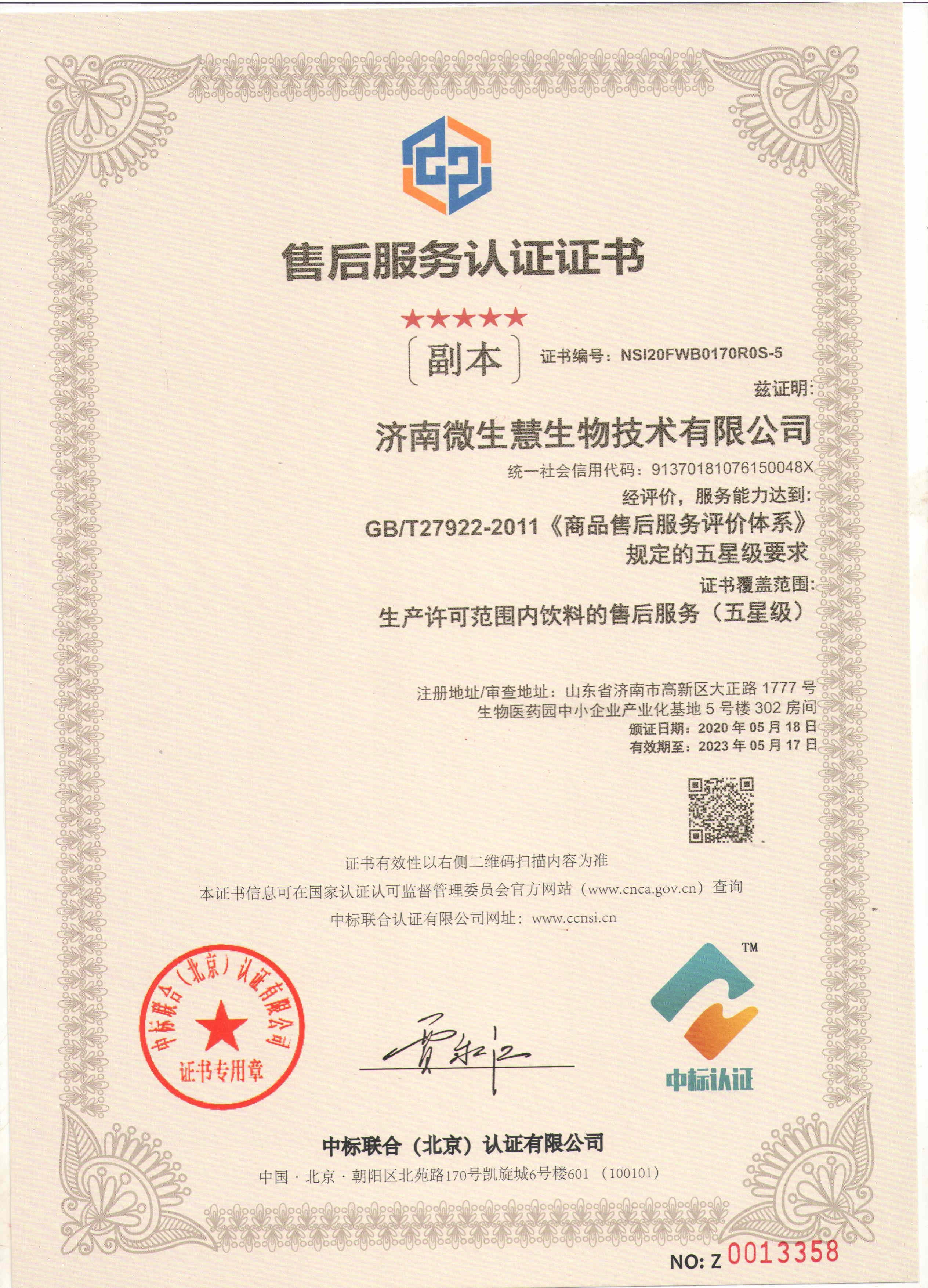 售后服務(wù)認(rèn)證證書