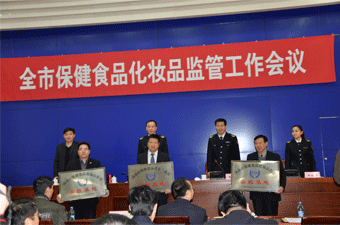 2013年3月13日,由濟(jì)南市食品藥品監(jiān)督管理局主辦的“濟(jì)南市保健食品化妝品監(jiān)管工作會(huì)議”在龍奧大廈隆重召開,來自濟(jì)南市及各縣(市)區(qū)監(jiān)管系統(tǒng)一線的執(zhí)法工作人員參加了此次會(huì)議。會(huì)議由濟(jì)南市食品藥品監(jiān)督管理局?;庩悘V銀處長(zhǎng)主持,濟(jì)南市食品藥品監(jiān)督管理局衣光軍副局長(zhǎng)、?;幎艜詡タ崎L(zhǎng)、?;幹煦y和科長(zhǎng)出席會(huì)議,我公司和山東天地健生物工程有限公司、山東福瑞達(dá)生物工程有限公司參加了此次會(huì)議,并上臺(tái)領(lǐng)取了“濟(jì)南市保健食品化妝品監(jiān)管實(shí)踐基地”的標(biāo)牌。