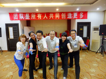 隨后,在大家熱切的期盼中迎來了第一個(gè)團(tuán)隊(duì)游戲。這是一個(gè)看似非常簡單的游戲,開始之前每一位隊(duì)員都充滿了必勝的信念,大家相約要以最短的時(shí)間完成任務(wù)。在游戲進(jìn)行中,大家才突然意識到,看似小小的道具并不像他們想象得那么容易駕馭,本意是向下,它卻偏偏朝上,一個(gè)預(yù)計(jì)在20-30秒就可以完成的游戲,每隊(duì)卻花費(fèi)了近20分鐘的時(shí)間,大大出乎意料之外。這時(shí)候大家才明白:“放下”原來是這么難。其實(shí)很多時(shí)候我們心里想的是我們要拿起什么,卻很少思考我們需要放下什么?放下榮耀、放下經(jīng)驗(yàn)、放下負(fù)擔(dān)、放下一切阻止我們前進(jìn)的障礙,只有先放下才會有機(jī)會拾起。