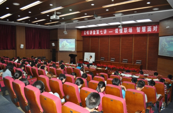 2014514日,晩700~930,在山東大學中心校區(qū)氣派的知新樓思源報告廳內(nèi),在就業(yè)指導中心王紀磊副主任、生命科學院韓春岫副書記、博導宋欣教授的見證下,二百余名學子,靜靜聆聽老校友湯傳忠先生作<讀懂職場,智慧應對>的專題報告會。二個小時的時間層層剝繭,深入淺出,其實,壓力沒有那么大,困難沒有那么多,人生是一場馬拉松,也不必那么急,讀懂了職場,完全可以從容面對、智慧應對。未來的路很長,走好人生的關鍵幾步,可以快樂工作,輕松生活,心燈點亮,夢想高飛,成人達己,游刃有余。