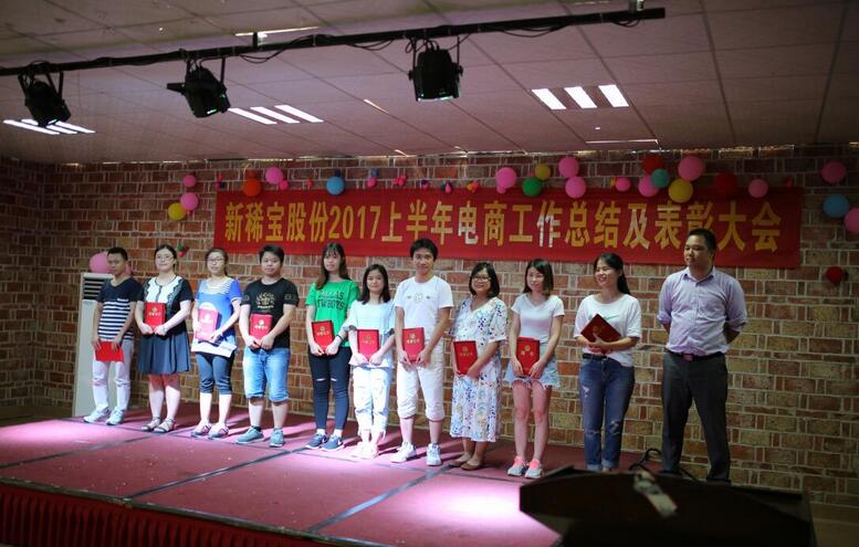 緊張激烈的競技賽之后,新稀寶股 份2017上半年電商、商網(wǎng)工作總結(jié)及表彰大會17:30開幕。會議剛開始,陳文歡經(jīng)理做了簡單的人事任免宣布,隨著公司不斷發(fā)展壯大,機構(gòu)調(diào)整也越來越 合理,人才的選拔,布局的完善,預示著企業(yè)的發(fā)展將愈來愈好、愈來愈快。緊接著是張秋峰經(jīng)理發(fā)表講話,從辦公地點的愈加緊湊、商網(wǎng)質(zhì)的飛躍,電商的持續(xù)發(fā) 展說起,感慨南寧分公司的發(fā)展之迅速。不但健康行業(yè)發(fā)展快速,孕嬰事業(yè)部也在快速增長中,外部競爭激烈,內(nèi)部競爭亦不容忽視。電商、商網(wǎng)下半年需心往一處 想,勁往一處使,爭取早日實現(xiàn)跨越式的增長。