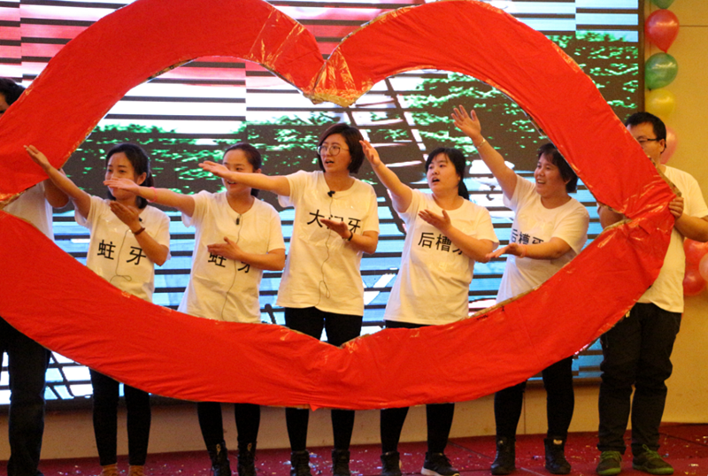 總結(jié)表彰大會結(jié)束后迎來了萬眾期待的新春聯(lián)歡會,后勤所有員工共分為四個代表隊,分別為財孕隊、相親相愛一家人隊、玉蘭隊和C哩C哩隊,四個代表隊為大家?guī)砹司实墓?jié)目。首先出場的是財孕隊的廣場舞《火了火了火》,他們用熱情之火燃爆全場;相親相愛一家人的交誼舞《愛的華爾茲》為大家?guī)砹瞬灰粯拥睦寺裉m隊的《大王叫你來巡山》活潑俏皮,C哩C哩隊的爵士舞《C哩C哩》引爆全場將晚會推向高潮。伴隨著歌曲《尊道貴德》,帶領(lǐng)大家感受道與德帶來的寧靜與莊重,小品《在那遙遠(yuǎn)的地方》除了為大家?guī)須g笑外,也讓我們感受到愛與奉獻(xiàn)的可貴。隨后畫風(fēng)一轉(zhuǎn),小型舞臺劇《喀秋莎》、《拔牙》形式新穎,幽默搞笑,為大家?guī)砹藙e樣的觀感體驗。除此之外,還有原創(chuàng)作品《三句半》緊扣大家的工作和公司的發(fā)展,讓我們在歡笑中回顧了這一年的歷程。后勤的女將們帶來的小品《女神和女漢子》,逗趣的表演、傳神的刻畫將整場晚會再次推向高潮;晚會在歌曲《365個祝福》中落下帷幕,令人回味無窮。