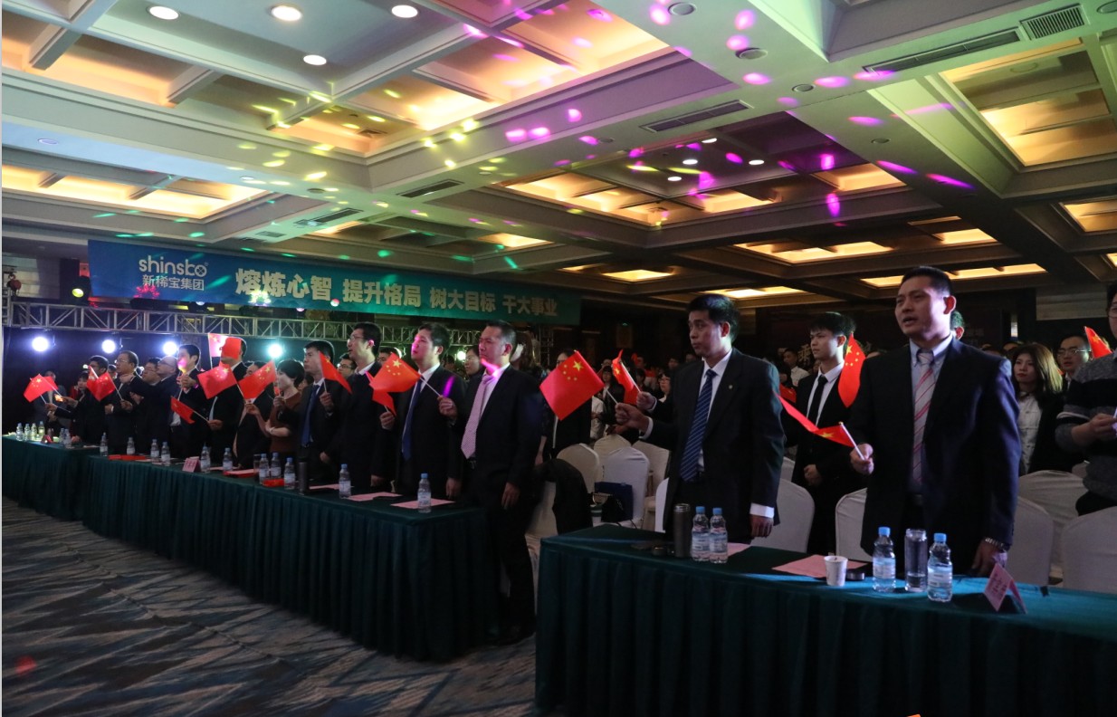 大會在莊嚴的國歌聲中正式拉開帷幕,新稀寶集團人力資本增值部總監(jiān)兼人力行政部經理于鳳仙女士主持大會,在主持人的帶領下全場共同觀看了氣勢恢宏的《贏定2020主題片頭》,全體參會代表集體誦讀企業(yè)文化,并宣讀本次年會主題口號“肩負使命、擔當責任、砥礪奮進、勇攀高峰;熔煉心智、提升格局、樹大目標、干大事業(yè)”,慷慨激昂的誦讀聲響徹整個會場,激勵著在場的每一位將士。